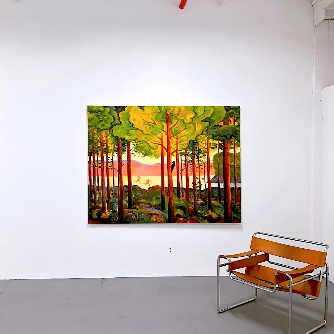 A memory from the past, rendered in the tradition of his predecessor and fellow Norwegian Edvard Munch, the Memory Paintings series are works von Morisse started in 2010. In “Going to the Lake”, 2012, the artist evoques his state of mind, reminiscent of his childhood in Norway, and remembers nostalgically the “happy days” of freedom and cheerfulness running in the forest near Finskögen.